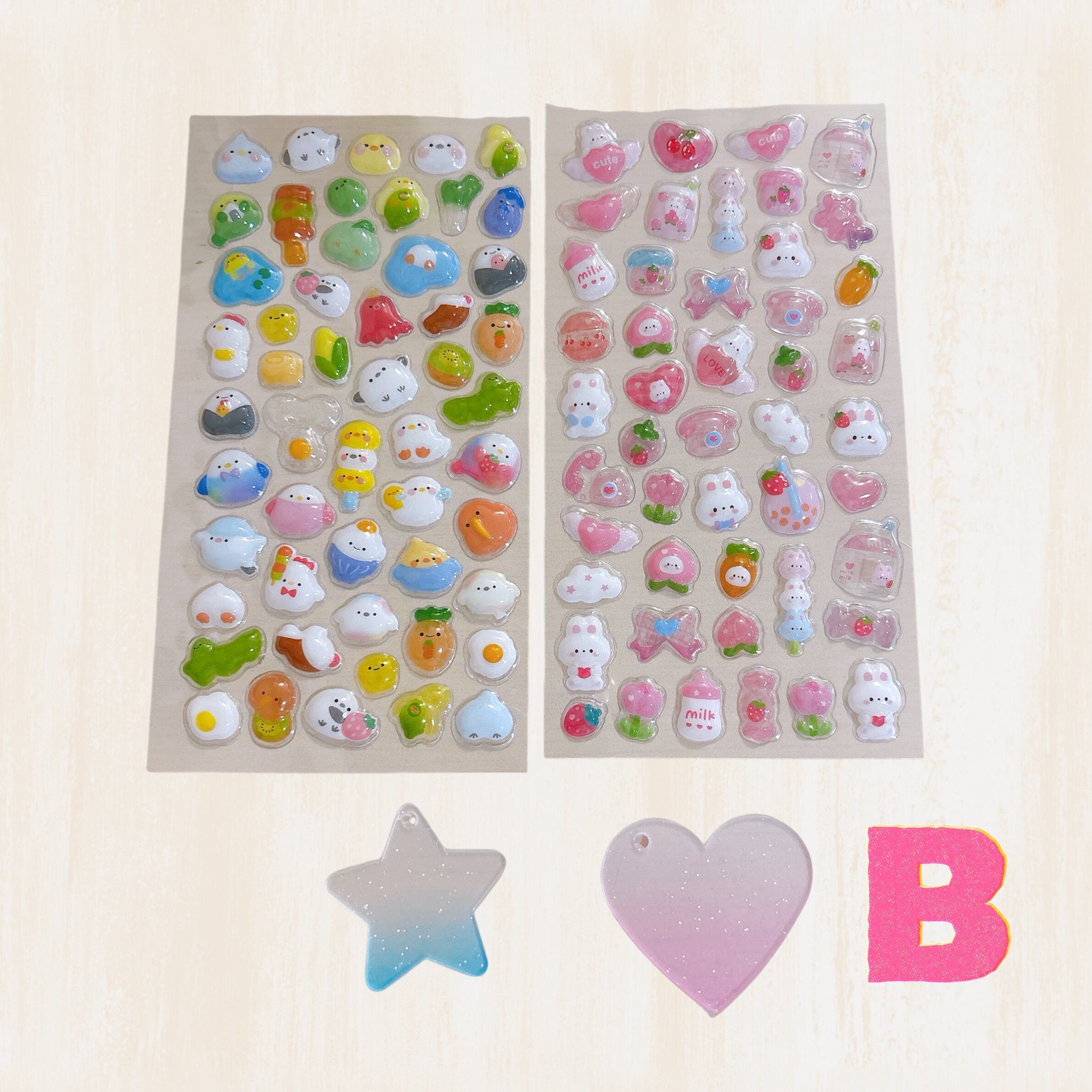 B:星ハートセット (プレート:星・ハート / シール:鳥・うさぎ)